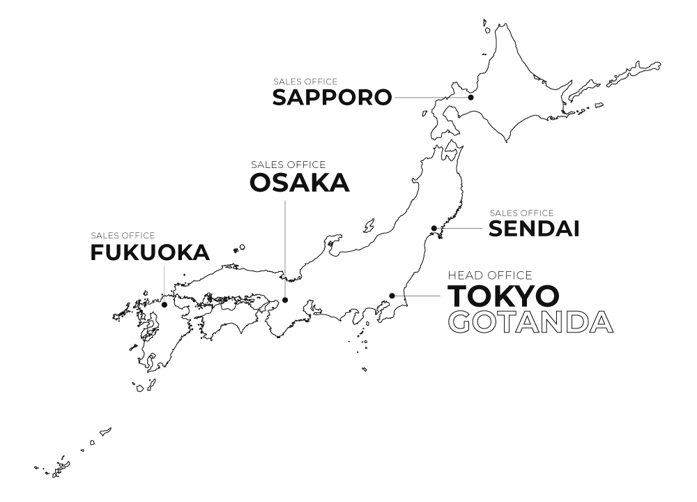 CYNDはIT企業を中心に新しいビジネス街として発展している東京五反田に本社を置き、エンジニア・営業・バックオフィスのある本社を中心に、大阪・福岡・仙台・札幌に営業所を開設しています。